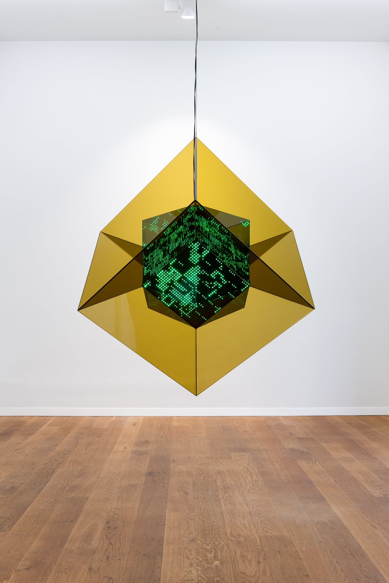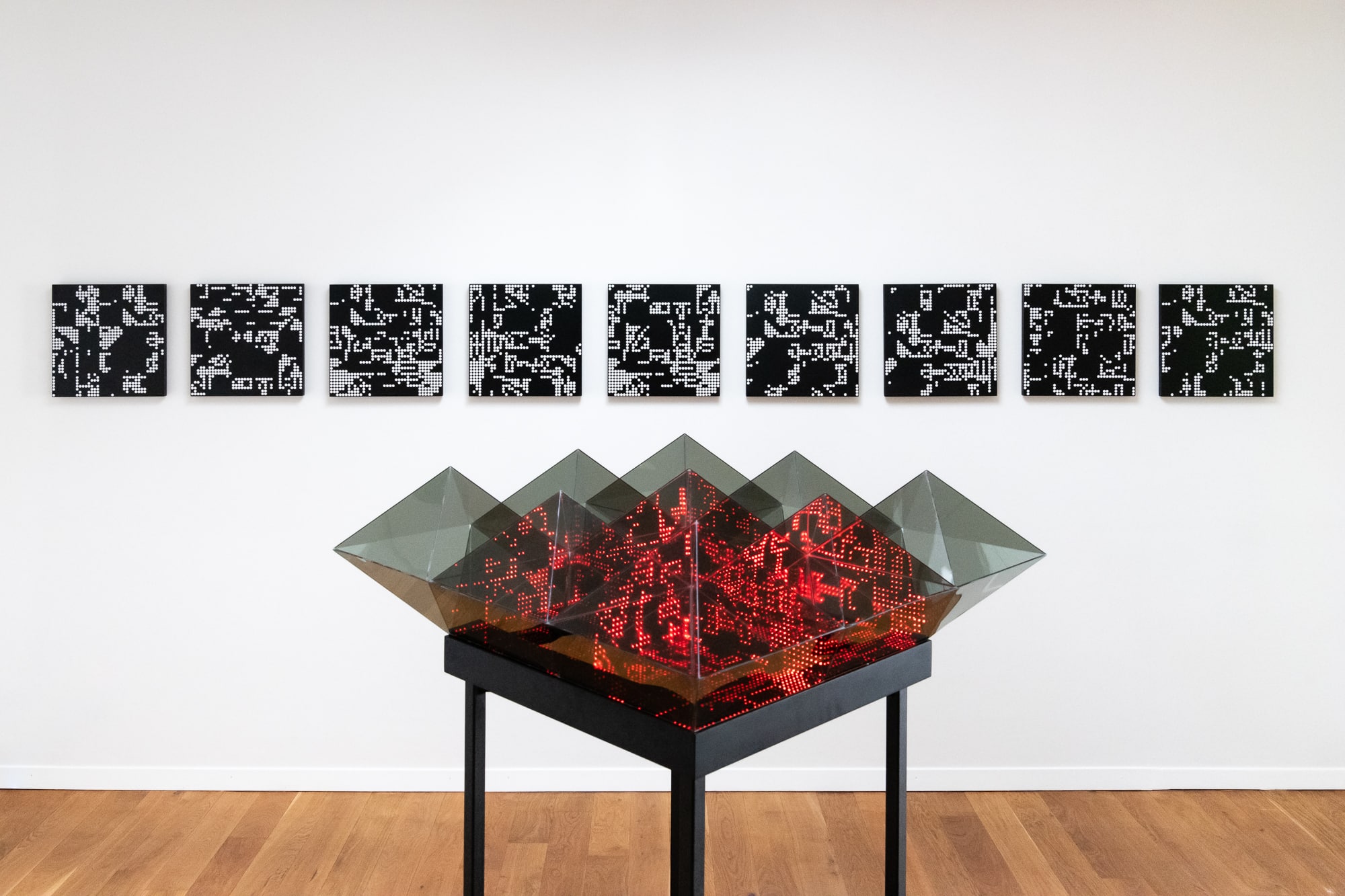 Sonel’s exhibition explores the notions of existence and non-existence as thesis and antithesis that could be transformed into each other. Sonel demonstrates that the language of digital communication can also be translated into a form of creative expression through unique combinations of zero and one.