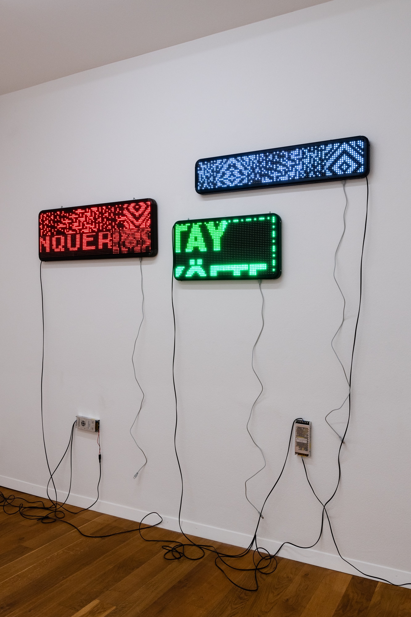 “Binary” is a continuation of the exhibition “One and Zero Make Two” previously displayed at Anna Laudel Istanbul in 2022. Since then Sonel has successfully carried over the guerrilla street art movement with his unique interpretation, being one of few examples in the world. Just like a graffiti artist leaving his signature on a wall with spray paint, Sonel enriches the street spirit with his digital art by guerrilla-dropping pre-programmed computer codes on LED signs placed on the streets.